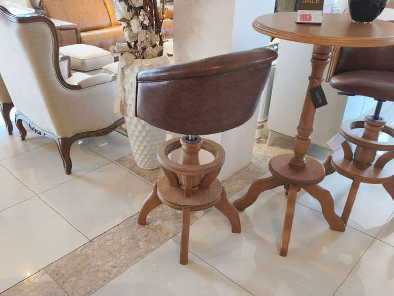 Este banco alto apresenta um design elegante e sofisticado, combinando conforto e robustez. A base é confeccionada em madeira maciça com acabamento em tom natural, trazendo um visual clássico e atemporal. Seu assento estofado em tecido marrom de textura suave, com encosto curvo e braços discretos, proporciona ergonomia e aconchego. O mecanismo de ajuste e o apoio para os pés integrados reforçam a funcionalidade, enquanto o formato arqueado das pernas e os detalhes torneados acrescentam um toque artesanal ao conjunto. Uma peça que une estilo retrô e praticidade, ideal para compor ambientes como bares, cozinhas gourmet e áreas de lazer.