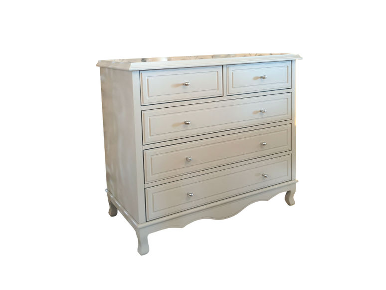 Esta cômoda apresenta um design clássico e elegante, com linhas delicadas e acabamento refinado que remete ao estilo francês. Sua estrutura robusta e os pés curvados conferem um toque de sofisticação e charme ao ambiente, enquanto os puxadores metálicos discretos complementam o visual com modernidade e bom gosto. Com quatro amplas gavetas, oferece praticidade e organização sem abrir mão da estética. Ideal para quartos e closets que valorizam um décor romântico e atemporal, esta peça une funcionalidade e beleza em um só móvel.