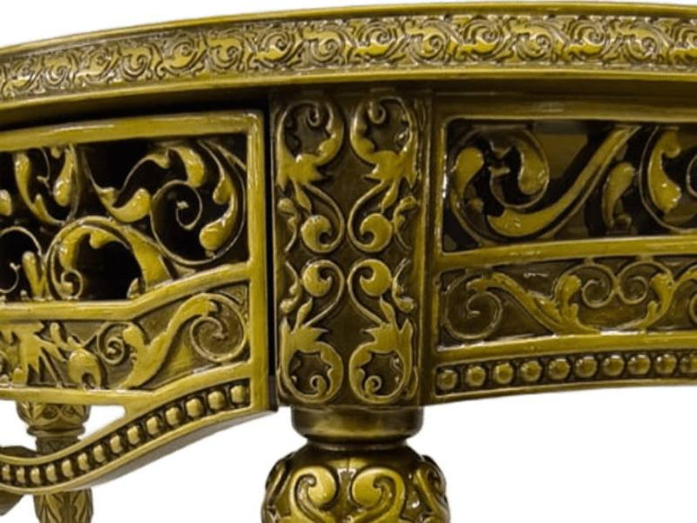 Sua estrutura robusta e os detalhes ornamentados remetem à arte e à sofisticação dos antigos palácios europeus, tornando-o ideal para compor halls de entrada, salas de estar ou ambientes que pedem um toque de imponência e charme.