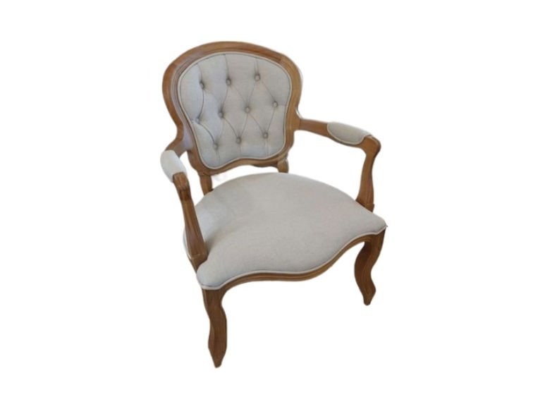 Poltrona elegante com design clássico, perfeita para compor ambientes sofisticados. Sua estrutura em madeira maciça possui curvas delicadas e acabamento natural, destacando o estilo artesanal. O encosto levemente arredondado, com capitonê em tecido claro, proporciona charme e conforto, enquanto o assento amplo garante praticidade no uso. Os braços delicadamente esculpidos complementam o visual refinado, tornando esta peça uma excelente escolha para salas de estar, escritórios ou recepções que buscam um toque de tradição aliado à leveza do design atemporal.